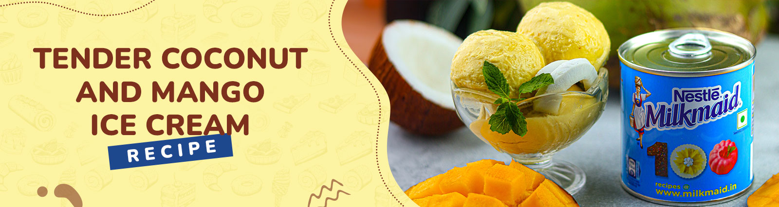 • Step 3: Add the prepared mango and coconut mixture in it along with Nestlé MILKMAID. Add coconut milk and whip again.